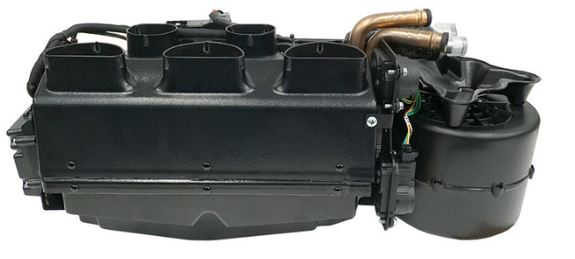 Features included high-torque OEM stepper motor-controlled blend air doors and heater control valve, block-type expansion valve for precise refrigerant flow metering. High-performance variable speed blower assembly. Microprocessor controlled coil temperature to eliminate external thermostat. Large 2.5″ duct hose outlets for superior airflow delivery and performance.